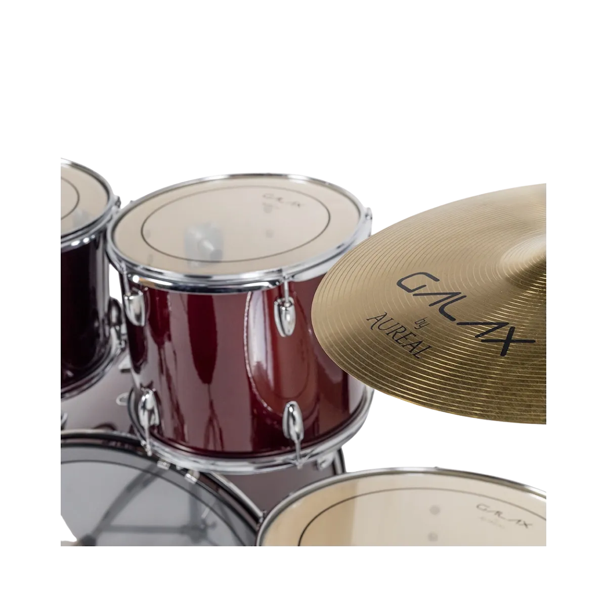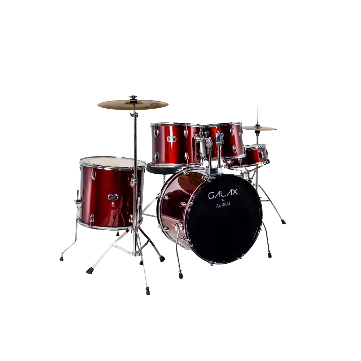 ¡Galax te ofrece todo lo que necesitas para iniciar tu viaje musical! Platillos Hi Hat 14″ y Crash 16″, banco y baquetas incluidas.