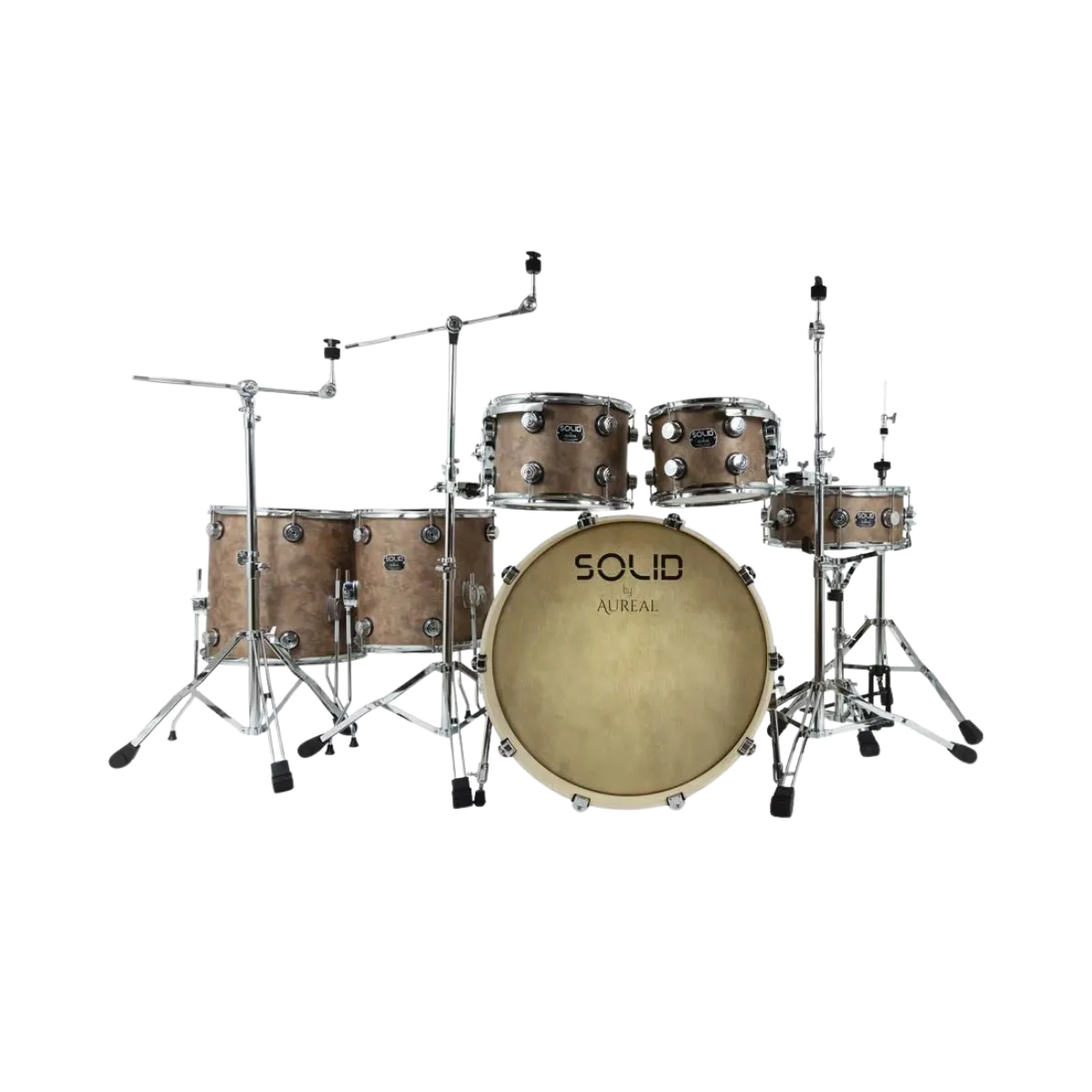 Bateria Acustica Profesional Aureal Solid Vintage C/herraje Marrón Oscuro