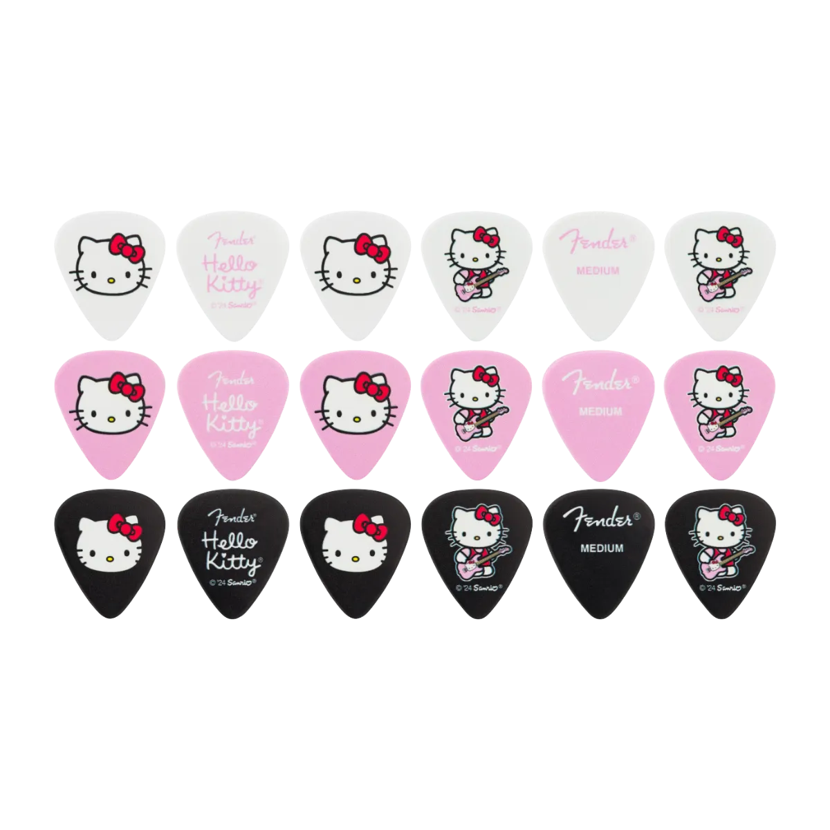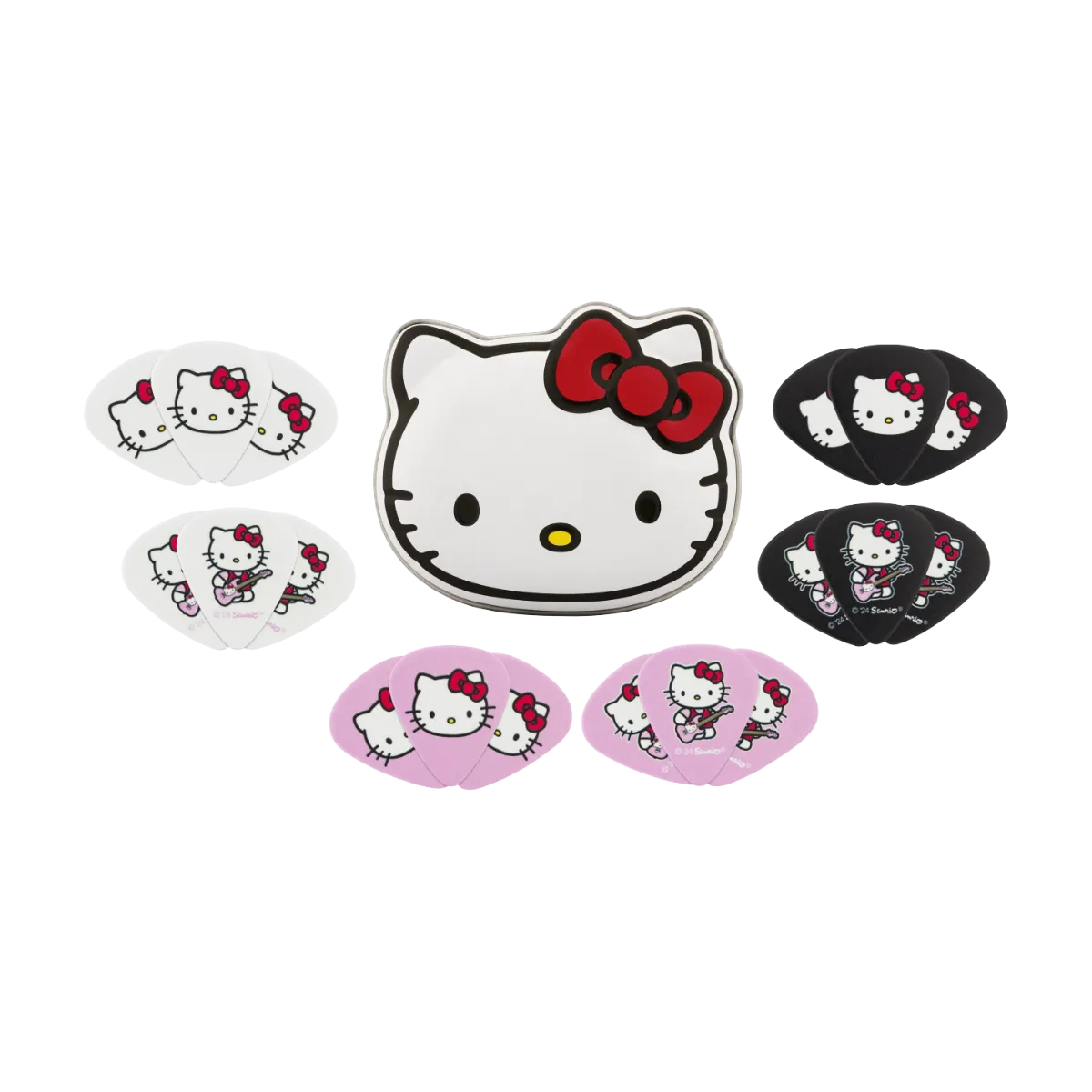 Con una lata de coleccionista con la forma de Hello Kitty, la lata de púas Fender® x Hello Kitty® contiene 18 púas medianas de celuloide impresas con los inconfundibles logotipos de ambas marcas. Las púas impresas presentan diseños personalizados de Hello Kitty en la forma tradicional 351 para un sonido musical cálido y redondo. Con su estilo encantador y su reutilización, esta lata de púas es tan funcional como atractiva.