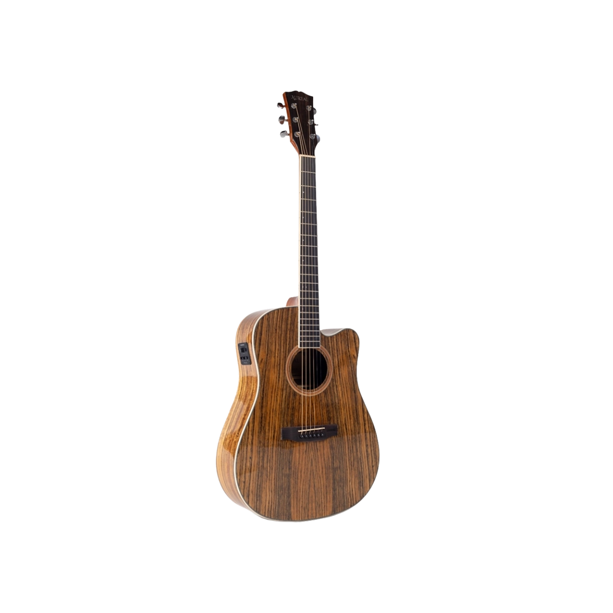 La Guitarra Electroacústica A-215-41 de Aureal combina tono cálido, comodidad y versatilidad, ideal para músicos que buscan un instrumento con sonido rico tanto al tocar de forma acústica como amplificada. Su cuerpo estilo dreadnought con tapa, costados y fondo de nogal ofrece una resonancia profunda y equilibrada que realza cada nota interpretada.