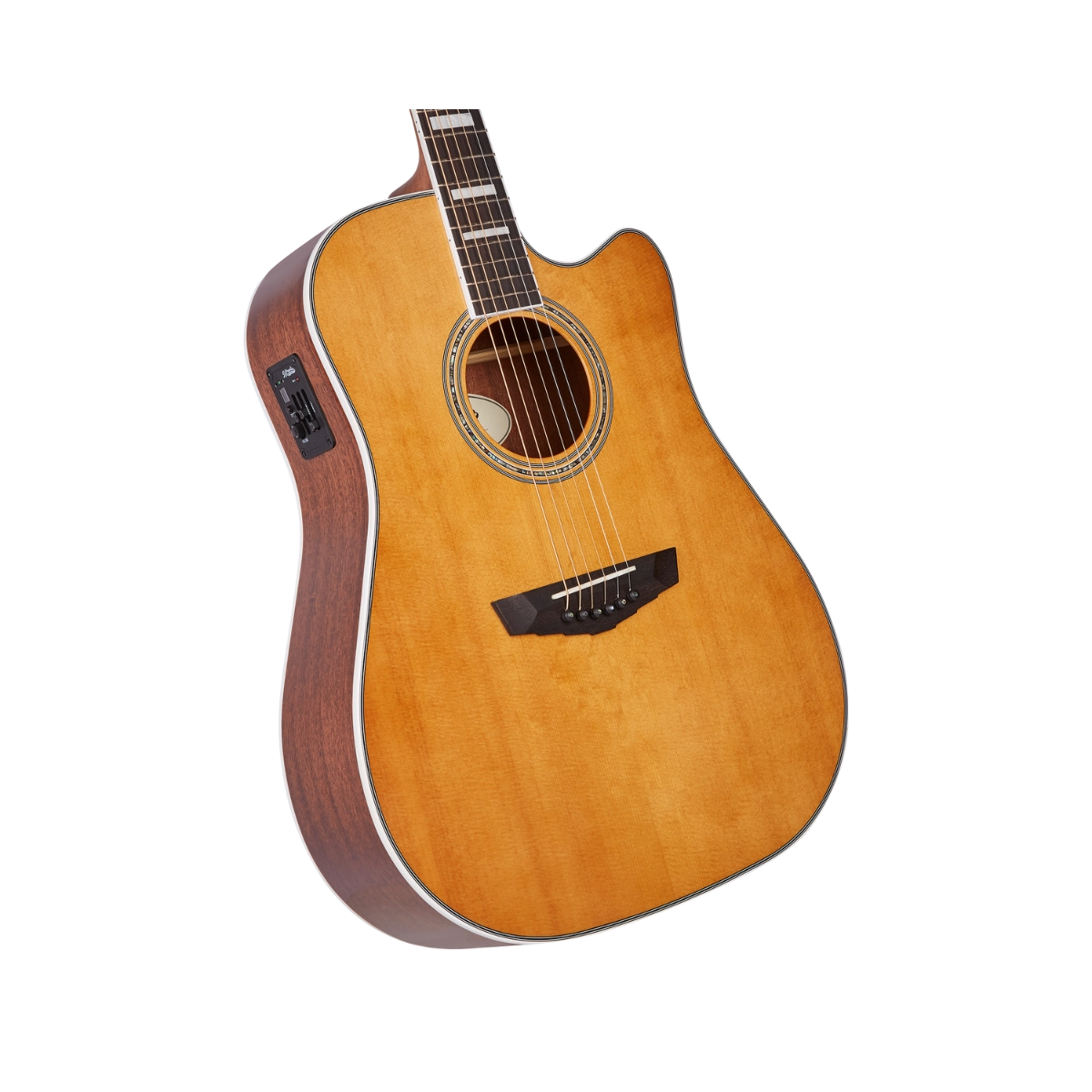 La Premier Bowery es una dreadnought de un solo cutaway, pensada para el rendimiento, que ofrece un sonido potente y articulado. Su cutaway profundo facilita el acceso a todo el diapasón, mientras que su diseño ligero y su mástil satinado sin acabado ofrecen una comodidad excepcional. Con una tapa de abeto macizo y un mástil de caoba, la Premier Bowery ofrece unos medios ricos con una definición nítida en los graves y agudos. Su estética vintage incluye herrajes antiguos, una roseta minimalista de tres anillos y tres nuevos acabados: Vintage Natural, Iced Tea Burst y Trans Black Cherry Burst.