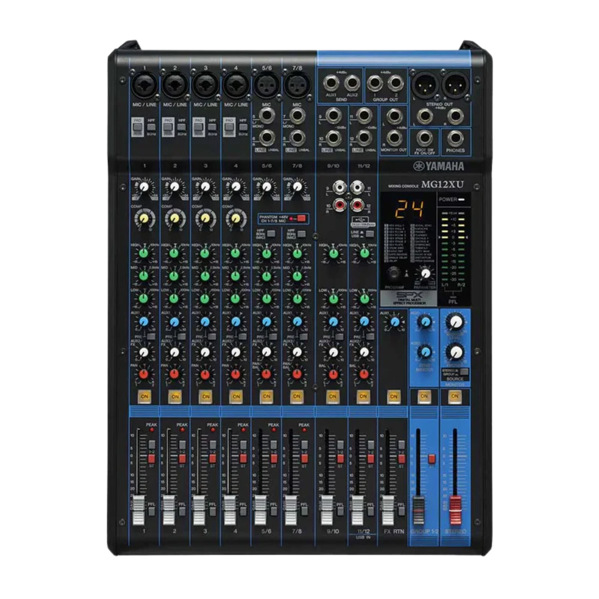 La Yamaha MG12XU integra a la perfección la calidad de audio de Yamaha con funciones digitales avanzadas, con una interfaz USB y efectos SPX. Es la solución definitiva para músicos, bandas, podcasters e ingenieros que buscan una herramienta versátil tanto para el escenario como para el estudio de grabación.
