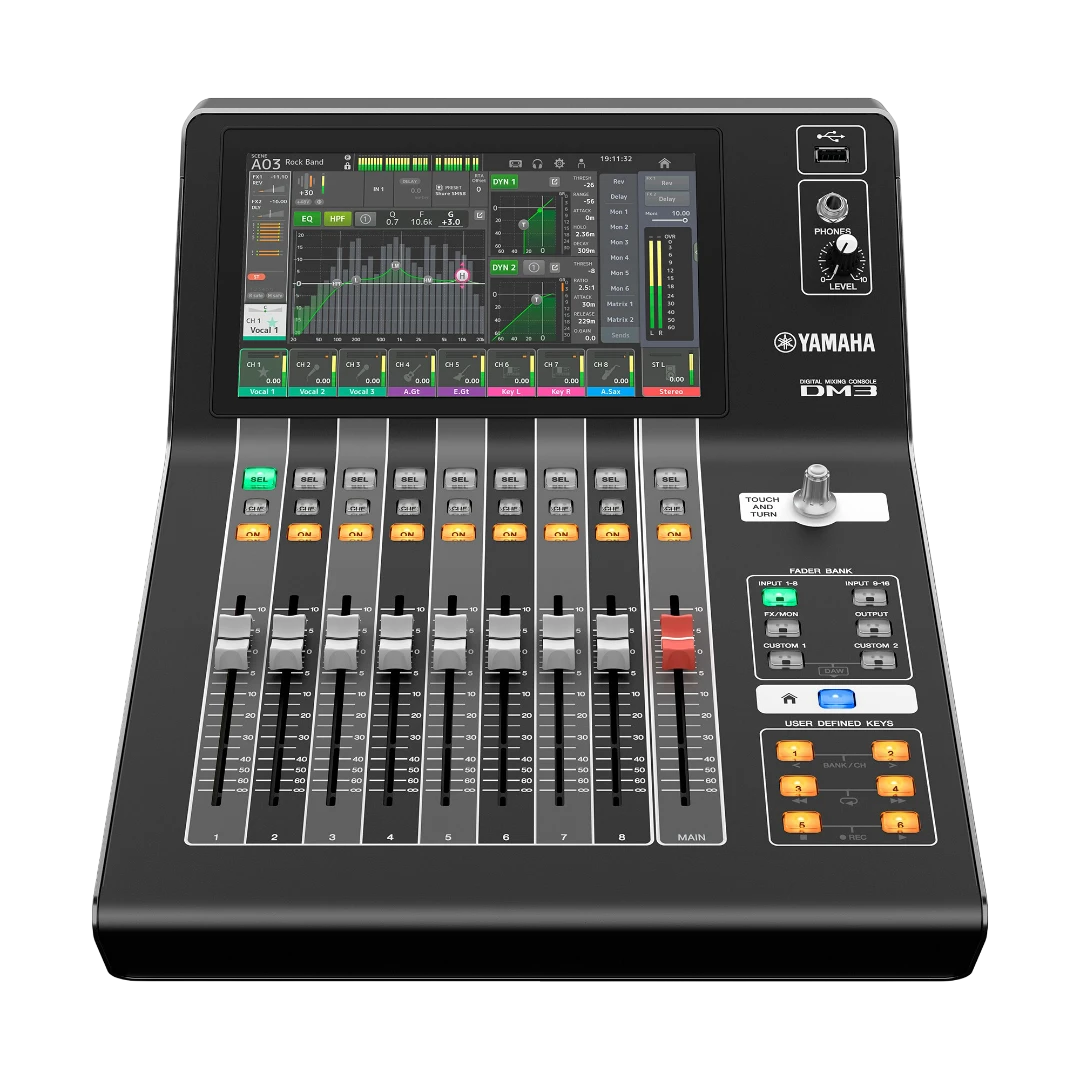 La Yamaha DM3 es una consola de mezcla digital que rompe con el estereotipo de que “compacto” significa limitaciones. Ofrece una calidad de audio suprema a 96 kHz, una interfaz intuitiva y funciones de nivel profesional en un cuerpo ligero y robusto, ideal para ingenieros en movimiento, bandas, podcasters y estudios caseros.