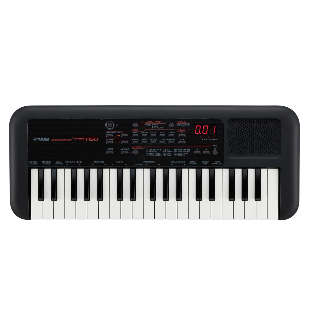 A pesar de su tamaño, el PSS-A50 destaca por sus 37 teclas sensibles a la pulsación, una característica que rara vez se encuentra en teclados de este segmento, permitiendo un control expresivo y dinámico de tu música.