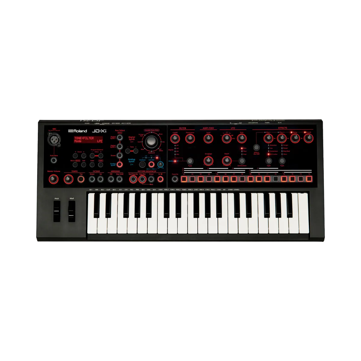 El Roland JD-Xi es una estación de producción musical “crossover” potente y asequible que combina lo mejor de ambos mundos: la calidez del sonido analógico clásico y la versatilidad de los tonos digitales modernos de Roland. Ideal para el estudio, actuaciones en vivo o para llevar tus ideas a cualquier parte.